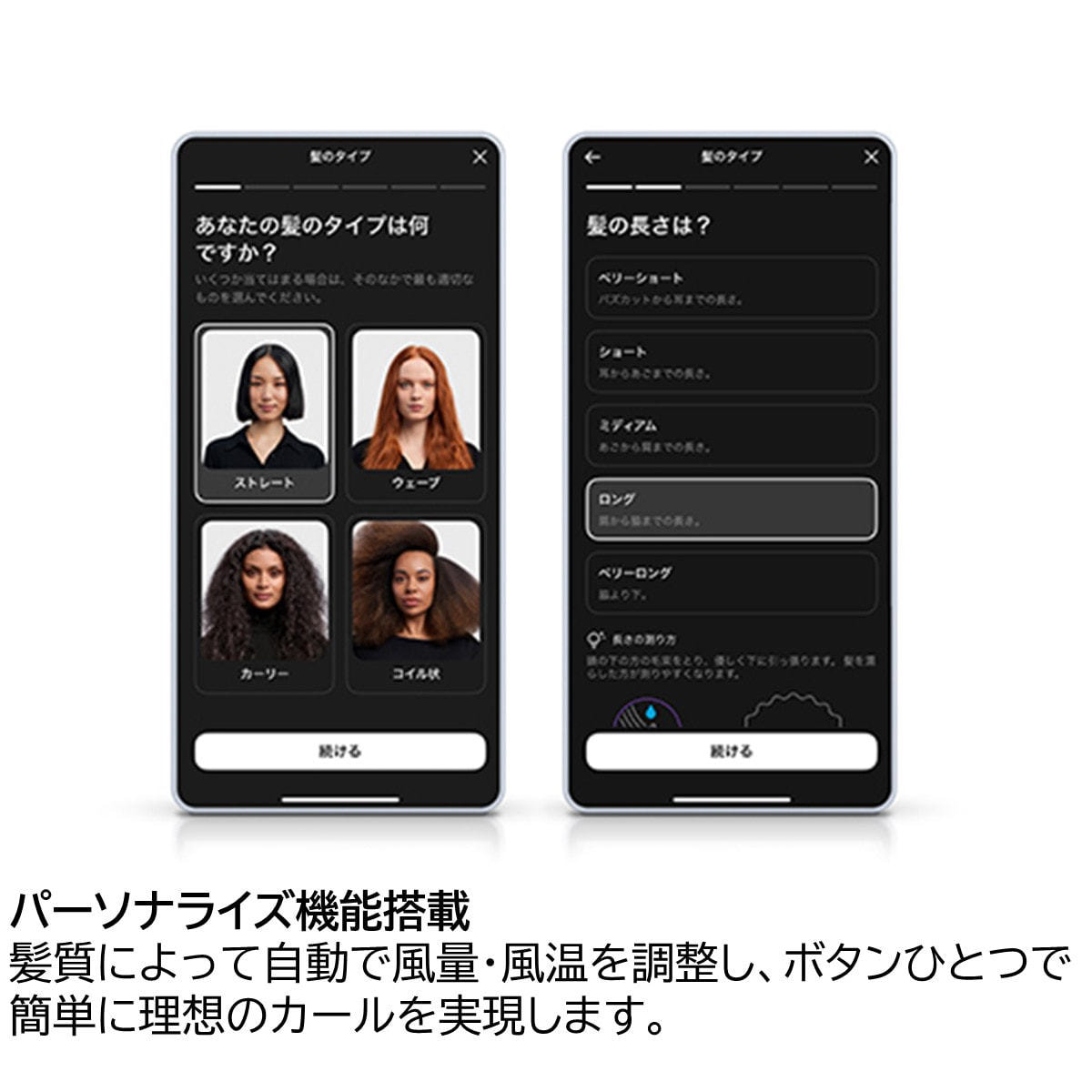 Dyson Airwrap i.d.™マルチスタイラー&ドライヤーのために開発された「MyDyson™アプリ」の「i.d. curl™」は、パーソナル設定が可能で、自動で簡単に理想のカールを作ることができます。